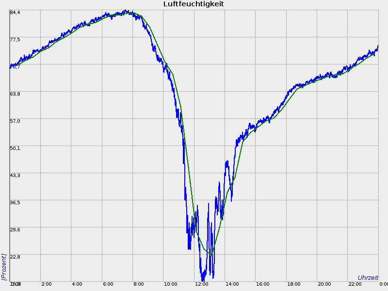 | Luftfeuchtigkeit [Proezent relativ] | 15,9 | 12:40:26 | 84,4 | 07:32:28 | 65,4 |