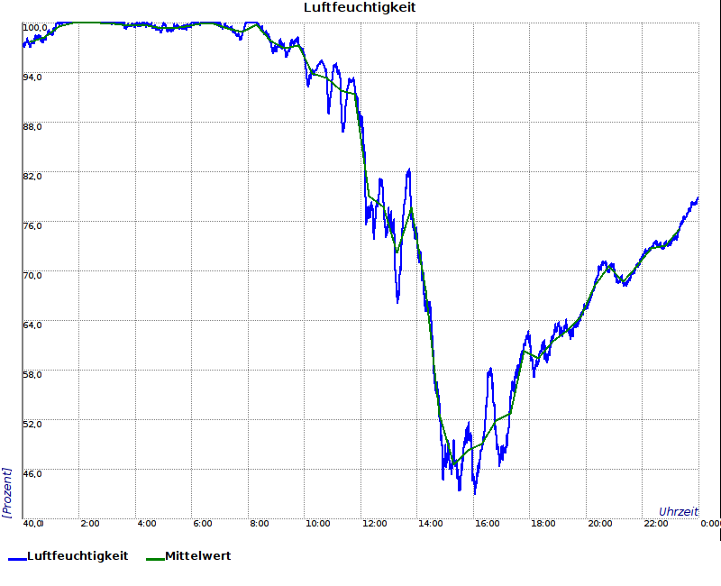Luftfeuchtigkeit [Proezent relativ] | 43,0 | 16:04:31 | 100,0 | 01:13:42 | 81,6 |