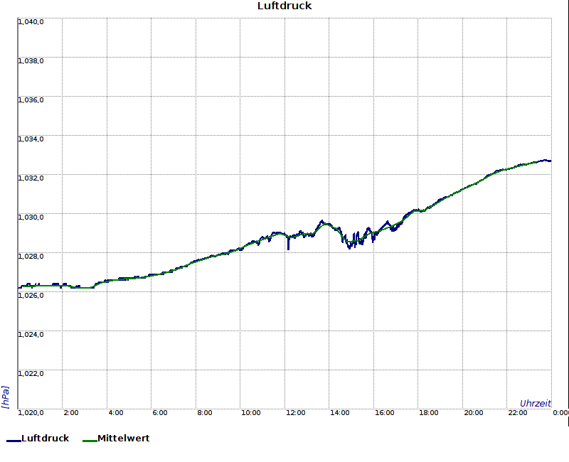 Druck [hPa] | 1026,2 | 00:00:00 | 1032,7 | 23:43:26 | 1028,8 |