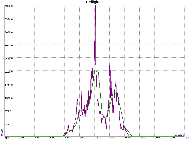 | Licht [Lux] | 0,0 | 12:06:29 | 4872,5 | 12:06:29 | 325,6 |