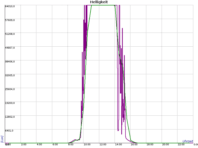 | Licht [Lux] | 0,0 | 13:27:36 | 64000,0 | 10:02:53 | 12718,6 |