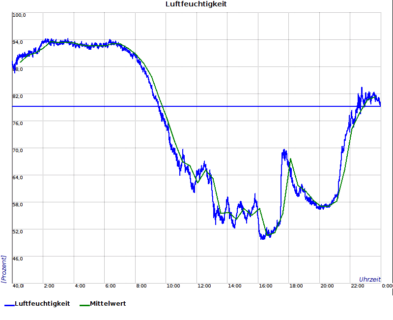 | Luftfeuchtigkeit [Proezent relativ] | 49,8 | 16:23:01 | 94,3 | 03:37:32 | 74,5 |