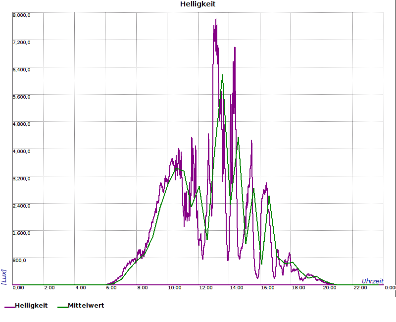 | Licht [Lux] | 7813,1 | 13:09:12 | 3682024,4 | ||