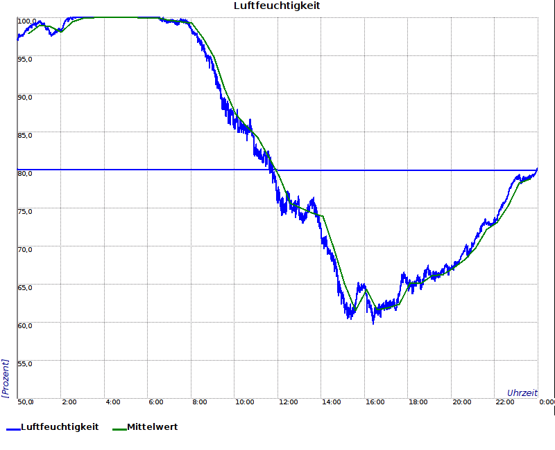 Die Grüne Kurve ist das Mittel aus 48 Werten und gibt zu Tagesende das Halbstundenmittel an.