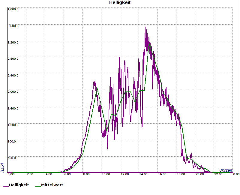 | Licht [Lux] | 3530,5 | 14:41:49 | 2932054,2 | ||