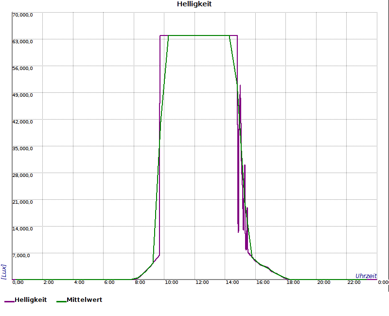 | Licht [Lux] | 64000,0 | 09:44:00 | 52711188,1 | ||
