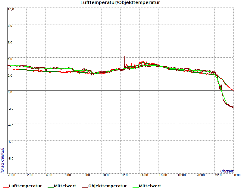 | Objekttenperatur [Grad C] | -2,1 | 23:55:41 | 4,1 | 12:27:46 | 2,4 |
