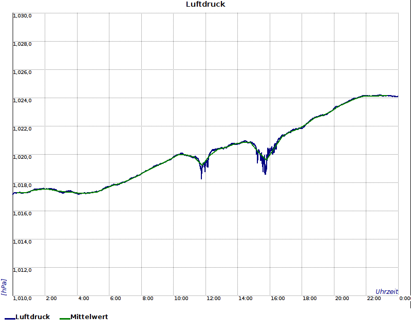 | Druck [hPa] | 1017,2 | 14:13:56 | 1024,2 | 22:50:53 | 1020,2 |